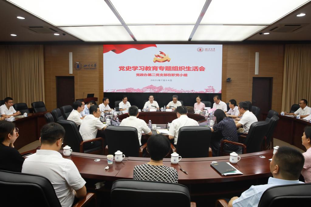 7月14日,學校黨政辦第一、二黨支部召開黨史學習教育專題組織生活會。教育部黨史學習教育高校第十一指導組組長鄭德濤、副組長趙忠、副組長謝守成等全體成員參加第二黨支部專題組織生活會。校黨委書記王建國、校長李言榮以普通黨員身份分別參加了所在黨支部的組織生活會。校黨政辦黨支部全體在職黨員,及學校相關單位負責人參加會議。