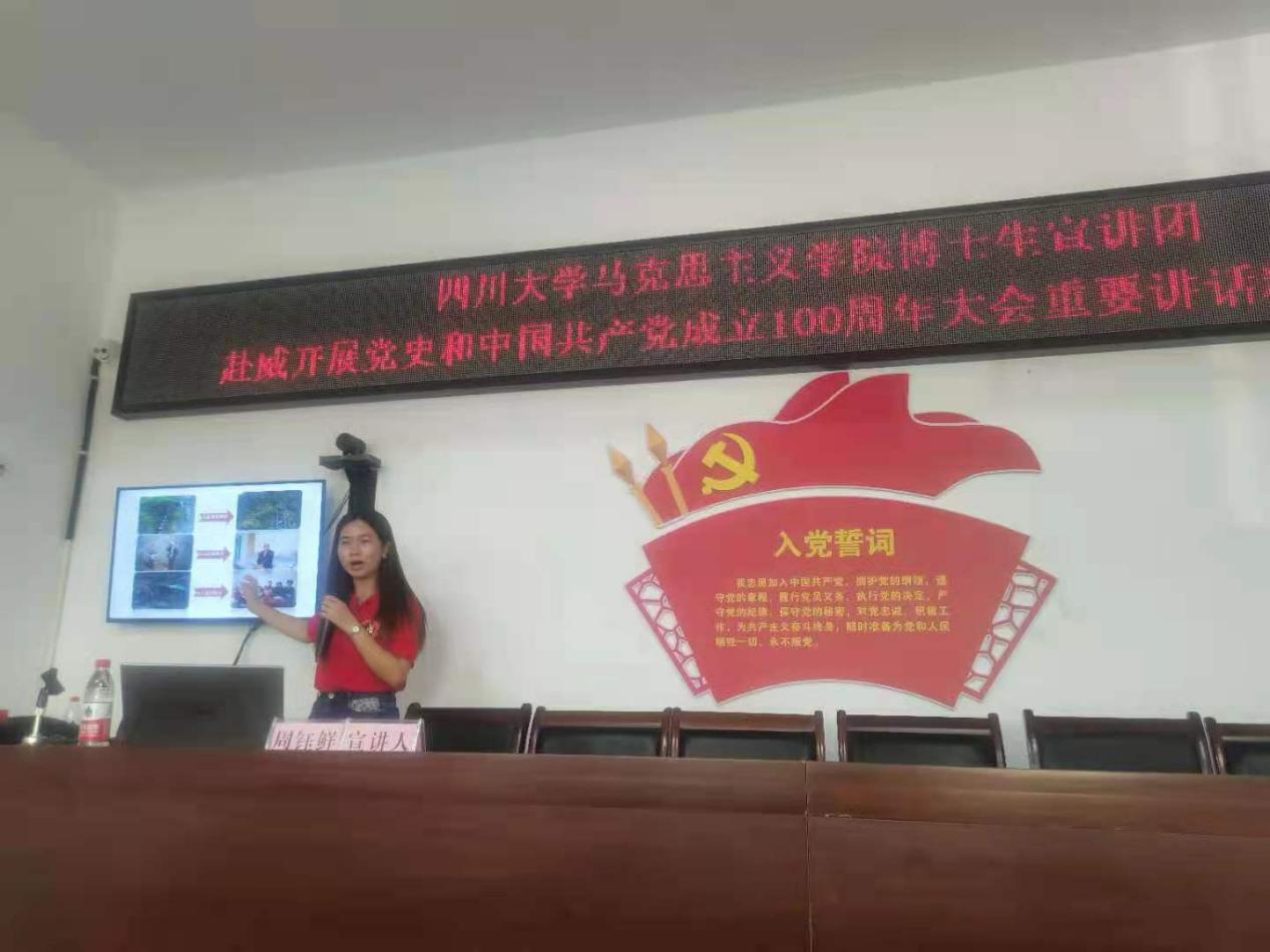 為深入學習貫徹習近平總書記在慶祝中國共產黨成立100周年大會上的重要講話精神,7月29日,四川大學馬克思主義學院“到人民群眾中去——百年黨史·百場宣講”博士生宣講團前往內江市威遠縣向義鎮四方村和連界鎮漫城社區開展宣講活動。四川大學馬克思主義學院黨委副書記劉淵,博士生宣講團成員徐淇鑫、羅俊梅、周鈺鮮、郭祎璠等參加宣講。