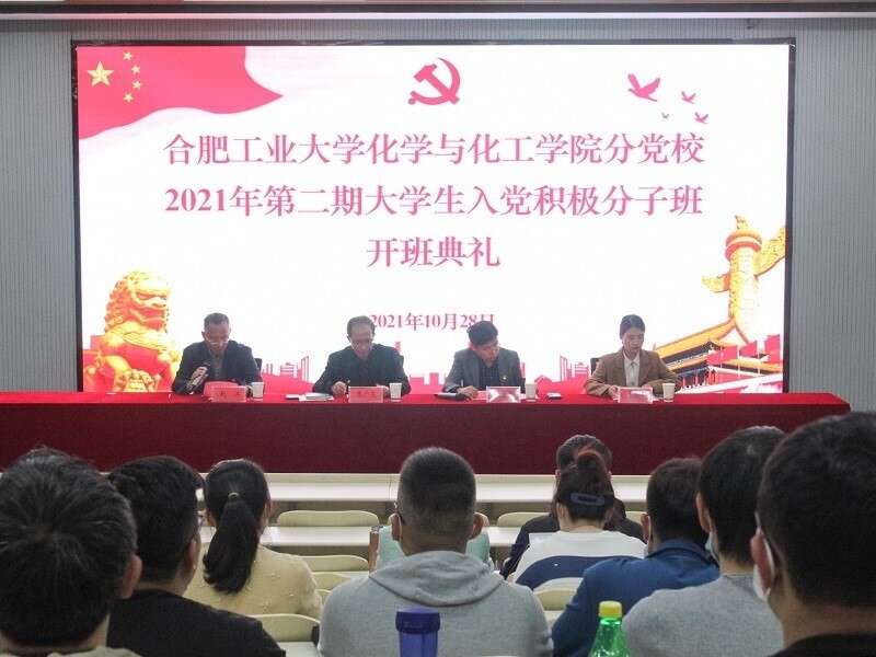 10月28日晚,合肥工業(yè)大學(xué)化學(xué)與化工學(xué)院于西教301舉辦2021年第二期大學(xué)生入黨積極分子教育培訓(xùn)開(kāi)班典禮暨主題黨課。