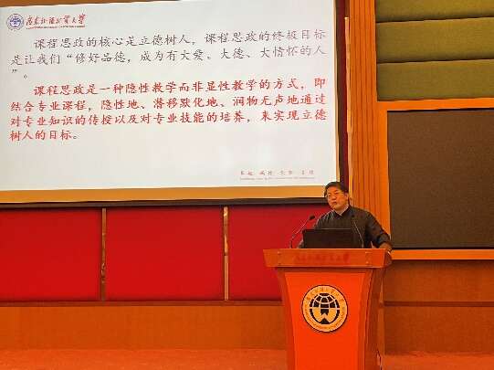 學校第二屆“師德標兵”獲得者李明教授作師德專題輔導報告。他利用自己的研究專長,以對師德的翻譯舉例,結合自己多年的教學科研的經歷,詮釋自己對高尚師德的理解,分享如何做好課程思政,實現立德樹人。